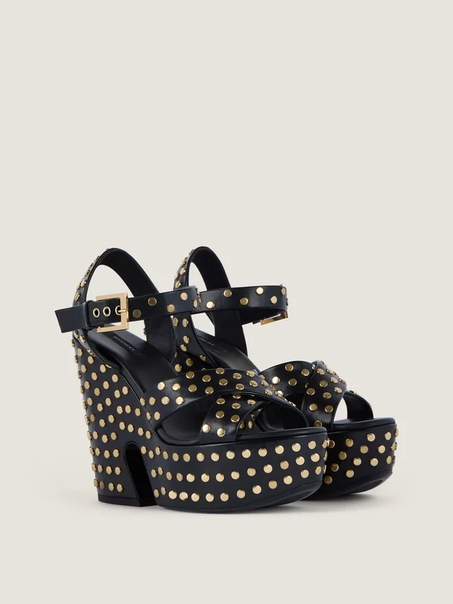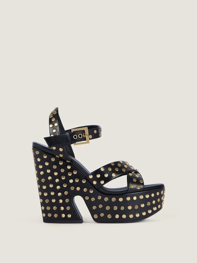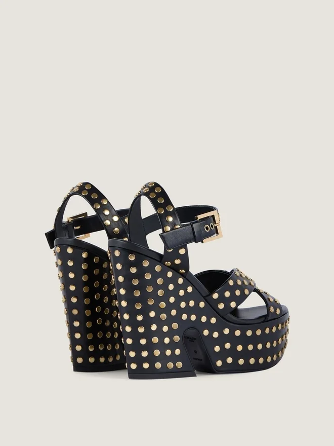 • Platform Sandals in Calfskin Leather with Studs.